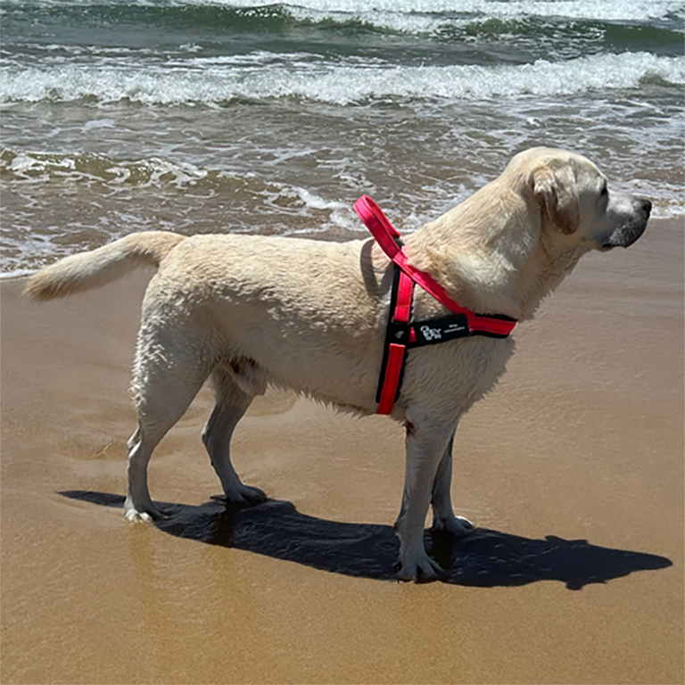 "When deciding on a harness for the dog I want something strong, durable and comfortable. This is all of that plus it looks great and to top it off can be left on when they go to the beach or river and easily cleaned with no discomfort for the pooch when wet. Great product."